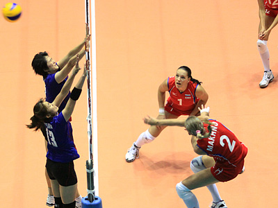 Проводящая первый сезон в основе сборной либеро Виктория Кузякина не выдержала такого прессинга и рёва трибун и допустила несколько ошибок подряд. Кузюткин безуспешно использовал все тайм-ауты, а дело тем временем подошло к четырём сетболам на подаче Меркуловой. Поймавшие кураж тайки попытались завершить партию откровенно пижонским ударом, чем сильно разозлили Гамову и компанию. Вместо того чтобы готовиться к четвёртому сету, наши девушки упёрлись и сравняли счёт, а когда игра пошла до первого брейкового очка, дрогнули уже тайки, попав под двойной блок.